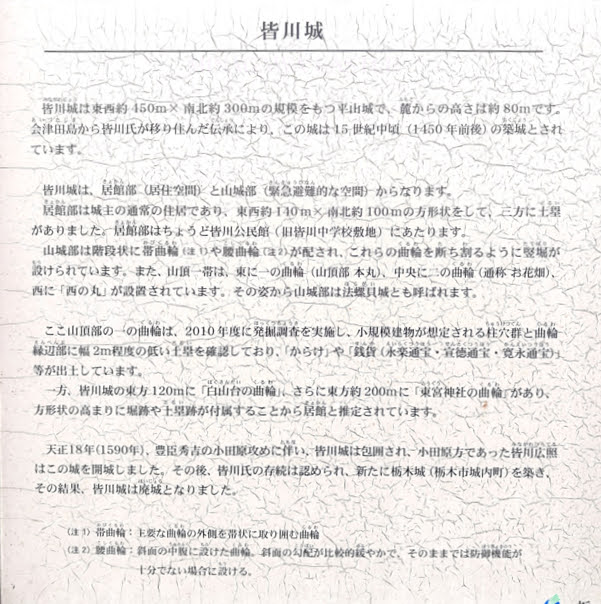 栃木市には、戦国時代に名を馳せた皆川氏ゆかりの史跡など文化財が数多く残されています。皆川城や栃木城のような城郭遺跡はもとより、天下の趨勢にも影響を及ぼした小田原北条氏と皆川氏の古戦場などたくさんの貴重な歴史的文化遺産(史跡等)があります。そうした史跡等の前に立つ説明板は、訪れる人にその歴史を伝える大切な「ことば」です。しかし、その中には江戸時代の軍記物や根拠のない俗説をもとに書かれたものもあり、近年の研究成果と食い違う内容も少なくありません。皆川氏の歴史を正しく理解しようとする際に、誤解を招きかねない表現も多々見られます。